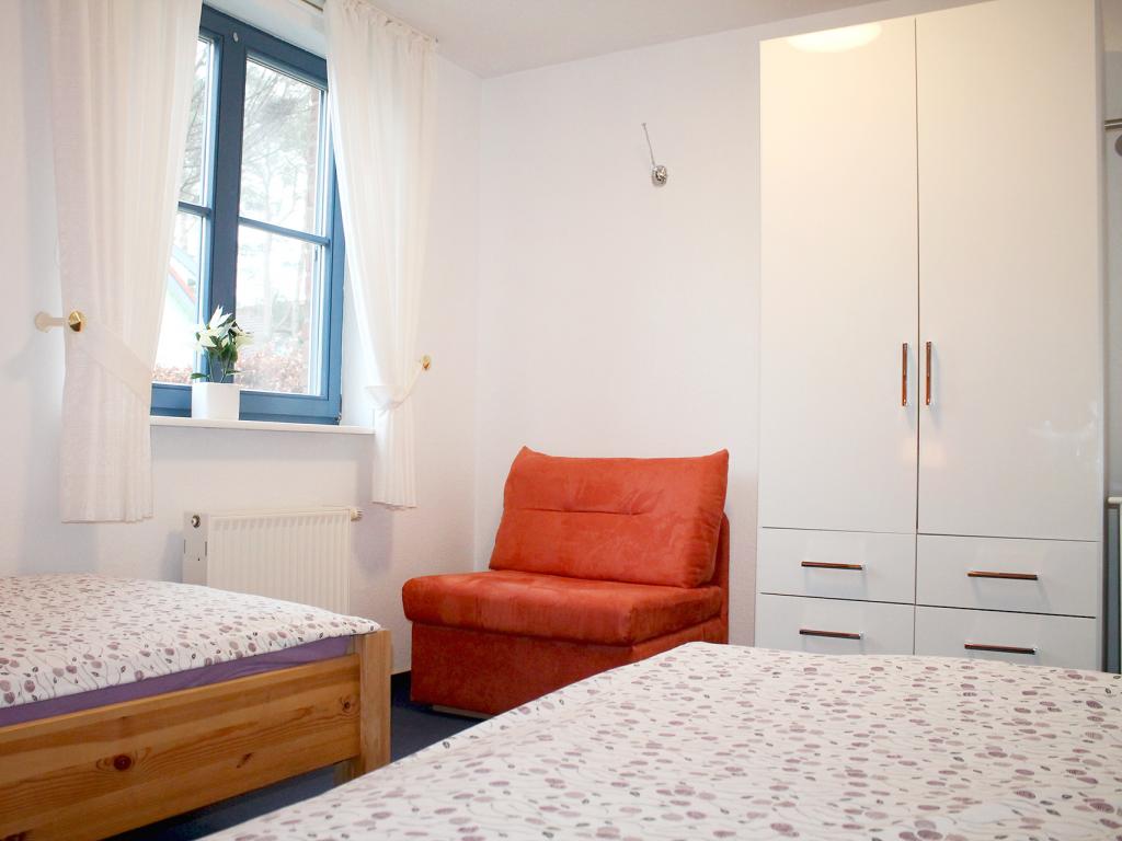 Das Schlafzimmer bietet zwei getrennte Schlafmöglichkeiten und ist mit einem großen Kleiderschrank ausgestattet. Weiterhin steht im Schlafzimmer ein Schlafsessel zur Verfügung.